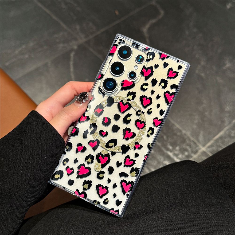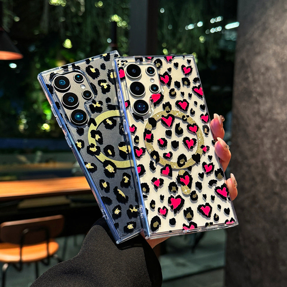 Samsung Galaxy S25 S24 S23 Ultra スマホケース S24FE S23FE ケース 人気の欧米風ヒョウ柄magsafe磁気リング携帯電話ケース